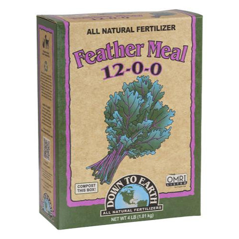 Down To Earth’s Feather Meal 12-0-0 is derived from hydrolyzed, dried and ground poultry feathers. An all-natural source of slow-release nitrogen, it is perfect for corn, tomatoes and fall harvested vegetables. DTE Feather Meal should be incorporated into soils before planting or side dressed throughout the growing season to provide a steady release of nitrogen necessary for optimum plant growth. Nitrogen is essential for all types of growing plants and an adequate seasonal supply ensures plenty of shoots, flowers, fruits and vegetables.
