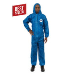 ViroGuard® disposable hazmat suits are designed and tested to protect against blood, blood-borne pathogens, bodily fluids, and many other liquid hazards. Tear and abrasion-resistant fabric protects against scrapes and scratches in the toughest work environments. Better yet, the fabric helps prevent heat stress with enhanced moisture vapor transmission, so you stay cool and comfortable on the job. An attached hood helps provide head, neck, and shoulder protection, while the blue-colored fabric makes stains and splashes less conspicuous. Possible applications for these disposable hazmat suits include emergency response, category 3 black water, tank cleaning, crime scene remediation, and animal research.