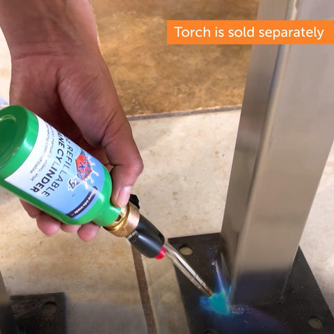 The Flame King 1/4 LB refillable propane cylinder is perfect for small propane lamps and lanterns, welding torches, and cooking torches. This propane bottle is refillable & transportable. Our unique & patented valve design is not available from any other manufacturer. Spend your money wisely & start refilling small cylinders whenever you need them! Tossing a single-use disposable tank is just a silly waste of resources & can be a potentially huge problem in the waste stream! Join the eco-revolution! Please note: these cylinders fill fastest & safest with our commercial Flame King refill adapter - sold separately. - UL1769 listed.