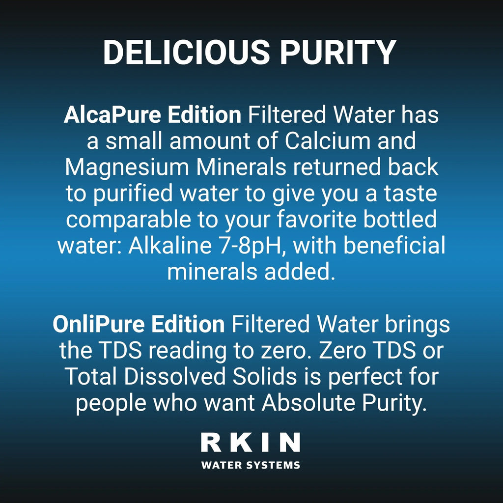 - AlcaPure Edition for Alkaline pH or OnliPure Edition for ZERO TDS