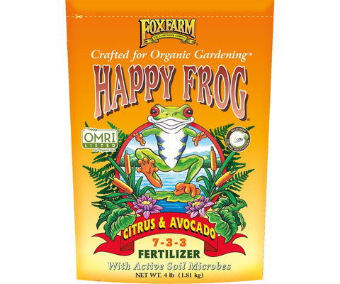 Happy Frog Citrus & Avocado Fertilizer is specially formulated with your citrus and avocado trees in mind. Nothing is better than the juicy, flavorful kick you experience when you taste a fresh lemon or lime, and no one can resist the smooth texture of a perfectly ripened avocado. This formula contains nitrogen for robust vegetative growth, as well as calcium and sulfur to address the specific needs of these beautiful and bountiful trees. Mycorrhizae and bacteria in this blend are included to help increase root efficiency and break down nutrients in the soil. Enjoy a burst of delicious goodness when you use Happy Frog Citrus & Avocado Fertilizer.