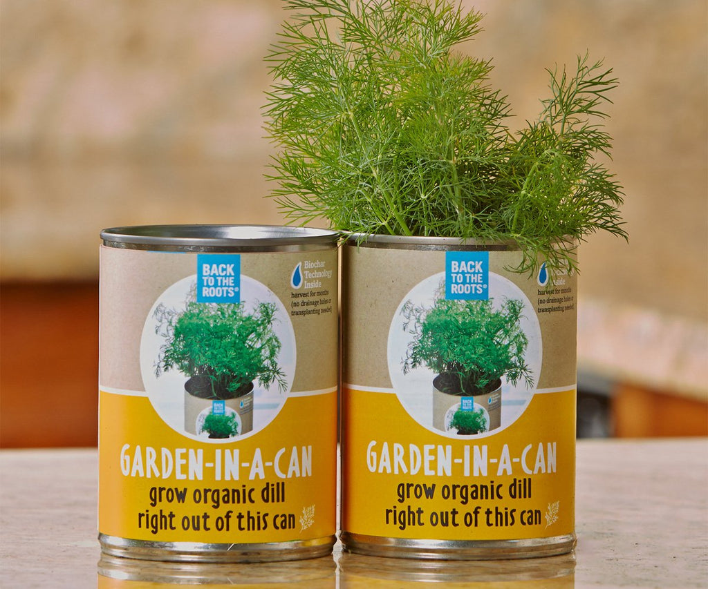 PLANT, WATER & GROW. Ready-to-grow cans that include organic seeds and nutrient rich soil with special moisture-balancing biochar technology to easily grow organic herbs right out of the can. No messy drainage holes, no chemicals, and no transplanting—just plant the seeds, water, harvest, and enjoy!