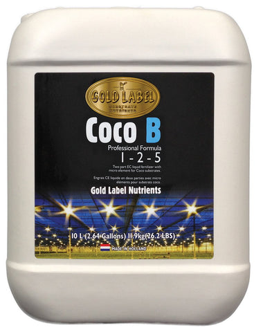 Gold Label Coco A&B is a professional grade two part nutrient for the vegetative and flowering phase in coco and coco-based substrates.