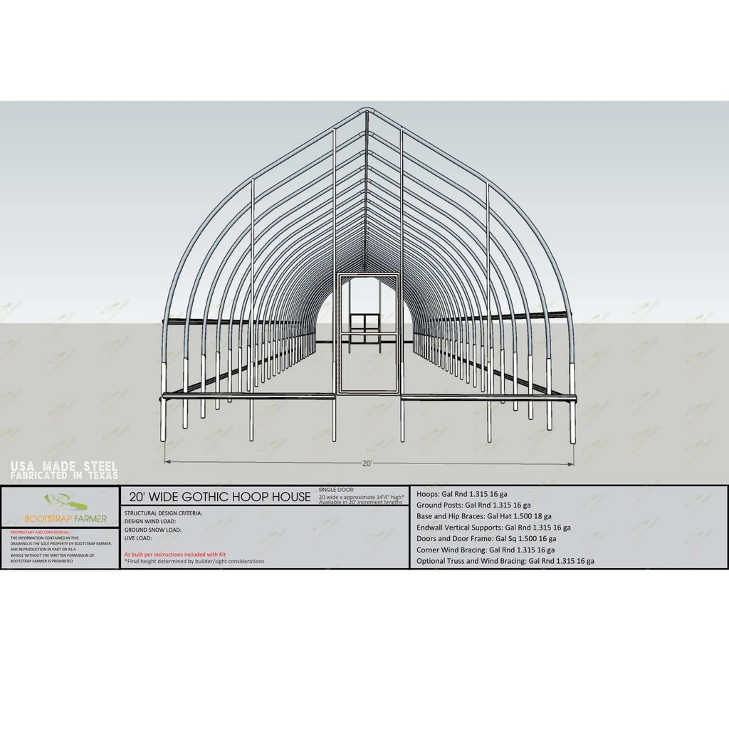 - 20' wide Gothic includes purlin kits & corner bracing