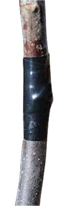First wrap the vine or tree graft with electrical tape; then you have the option of carefully covering the union and binding material with grafting compound.