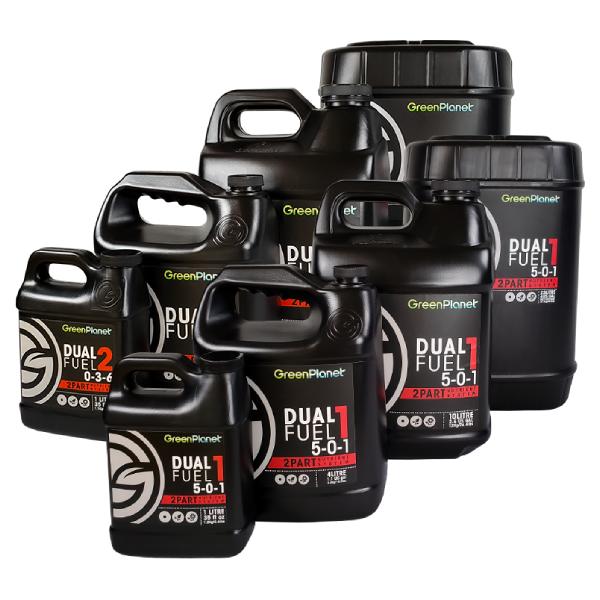 Green Planet Nutrients’ Dual Fuel is a two-part base nutrient that is easy and simple to use. Whether you’re a novice or master grower, Dual Fuel can be tailored to the demands of your grow. This is the base for the Dual Fuel Feed Program.