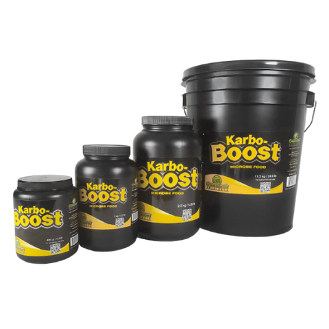 Karbo Boost is a powdered supplement that delivers an added source of carbohydrates for microbial life during the flowering stage. This encourages the rapid expansion of beneficial microbe colonies in the growth medium.