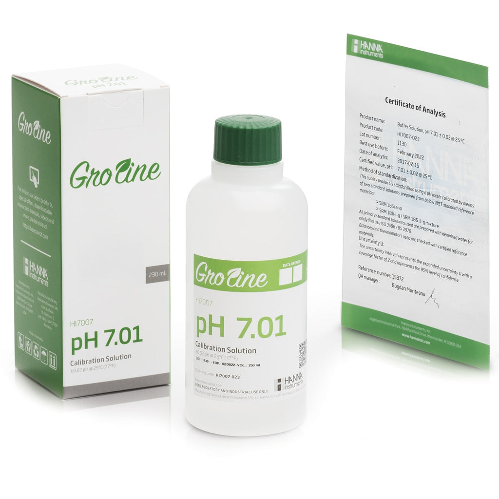HI7007-023 is a high quality pH 7.01 calibration buffer that is NIST traceable and supplied with a Certificate of Analysis. Hanna calibration buffers have the lot number and expiration date clearly marked on the label and are air tight with a tamper-proof seal to ensure the quality of the solution. Hanna's line of technical calibration buffers have been specially formulated to have an expiration of 5 years from the date of manufacture for an unopened bottle.