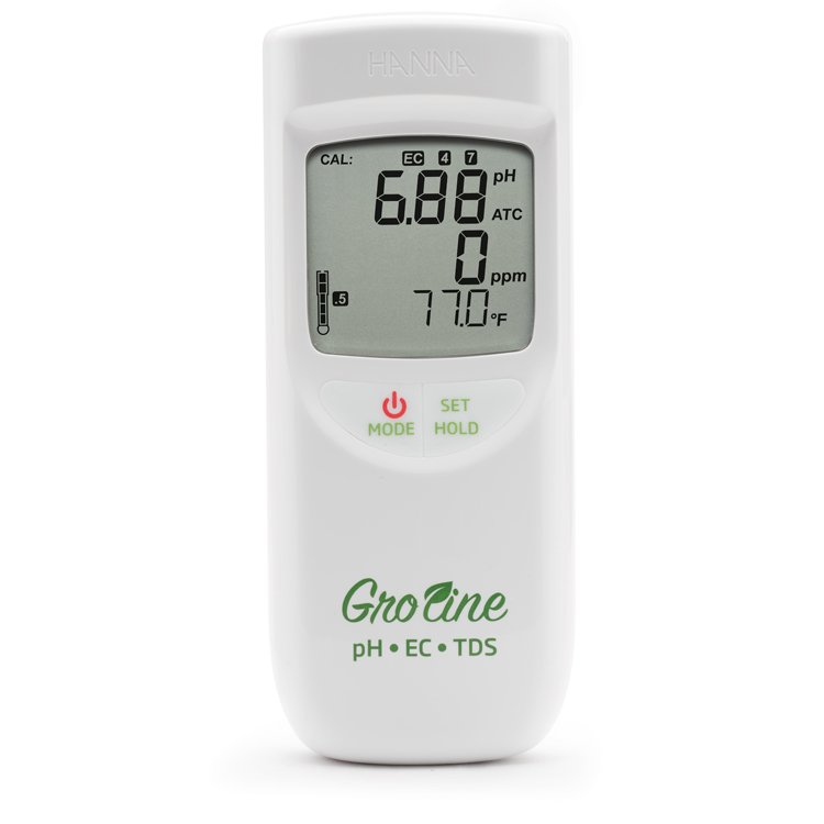 Designed to bring simplicity to nutrient testing, the HI9814 Portable GroLine Meter is designed specifically for Hydroponic growers. The specialized electrode combines 3 sensors in a single rugged probe featuring a polypropylene body, integrated temperature sensor, and cloth junction.