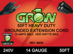 Tired of calling your electrician to put that 240v outlet where they're hardest to install, fear no more. Grow1 240v extension cords will help you make the most of your grow space. Available in 16 Gauge (10, 15, 25 foot) and 14 Gauge (10, 15, 25, and 50 foot) these cords can handle up to 15 amps and 1800 watts adding extra length to almost all indoor lighting fixtures and many other grow room devices. Let Grow1 help light your way today! (guy in back ground yells Grow1!)