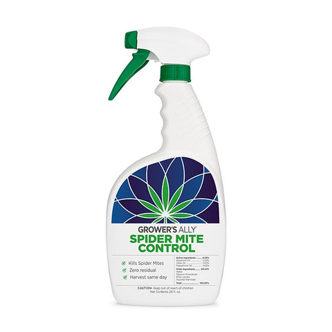 Grower’s Ally Spider Mite Control is an OMRI Listed® insecticide, miticide and repellent for use on cannabis and hemp. Formulated with an effective blend of rosemary, clove and peppermint oils, Grower’s Ally foliar spray tests clean and is proven to kill and repel common soft-bodied insects, including adult and nymph spider mites. Trusted by large scale growers for use in the flowering stage and suitable for all grow environments and cultivation facilities: indoor, outdoor, greenhouse, hydroponic.