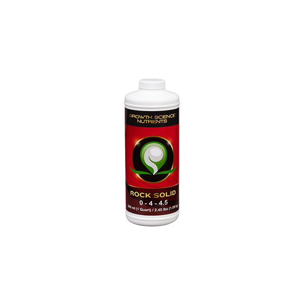 Growth Science’s Rock Solid is a powerful, cost-effective bloom booster for the flowering cycle that doubles as a P/K booster to provide additional phosphorus and potassium in bloom. Rock Solid also incorporates proprietary plant extracts in this blend to aid in flower site development. These added components facilitate improved overall harvest yields as well as maximized resin and aromatic production.