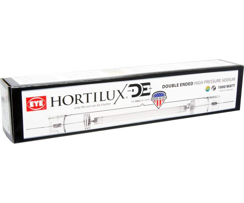 EYE HORTILUX Double Ended (DE) High-Pressure Sodium grow lamps offer a reliable light source capable of producing consistently high yields through many growth cycles. The exclusive EYE HORTILUX DE spectrum provides 1950 μmol/s of photosynthetic photon flux (PPF) when operated at 1000W and 2100 μmol/s when operated at 1150W. PAR micromles are measured between 400 and 700 nanometers.