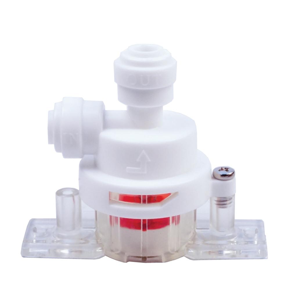 Installs on inlet line. If there is a leak anywhere in the system and water reaches the pad on the bottom of the leak protector the valve shuts off all incoming water preventing further damage from the leak. Pads are replaceable. Comes with 2 pads, double sided mounting tape and stainless steel mounting screws.