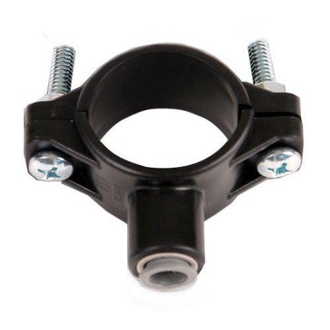 The black drain line of your RO system can be connected to the main drain under your sink for a clean intall. This saddle mounts around a 1" to 1-1/2" pipe and comes with a 3/8" quick connect fitting for the Merlin Garden Pro's drain line.