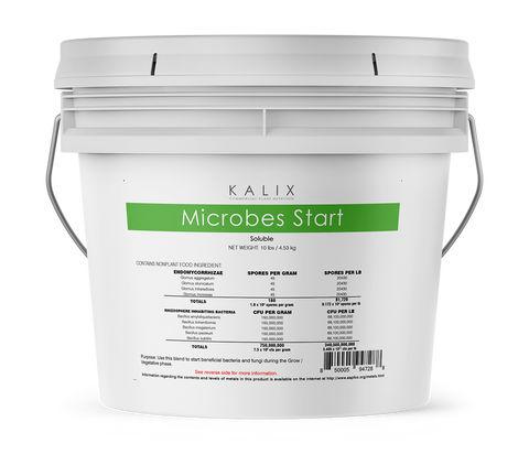 KALIX Microbes Start is a specialized blend of beneficial bacteria and fungi, formulated for use during transplanting and the growth/vegetative phase. Inoculate at any time throughout a plants' life with KALIX stage-specific microbe blends.