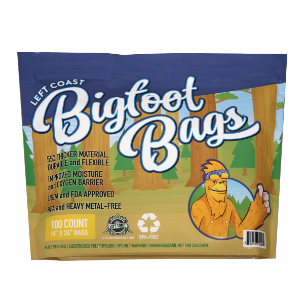 For superior storage of processed product with tear-resistant material, look no further than Bigfoot Bags. 55% thicker than other bags on the market, our industrial-strength nylon polyethylene material results in durable, food-safe, smell-proof bags.
