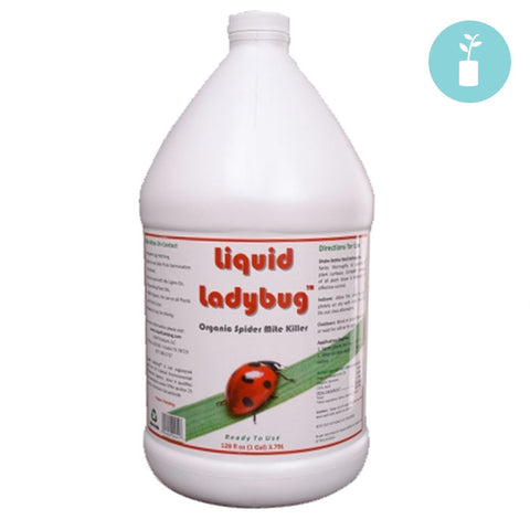 Liquid Ladybug V™is for “Vege''; the first miticide specifically formulated for plants in vegetative growth. It is the strongest pre-bloom phase spider mite killer available and the natural oils in Liquid Ladybug V™will not harm growth but stop mites in their tracks and end the egg laying cycle. It’s safe to use on all plants and food crops and will not harm beneficial insects while successfully eliminating spider mites infestations. Liquid Ladybug V™is the most economical miticide on the market today. Now you have a choice, either regular Liquid Ladybug™for plants in bloom or Liquid Ladybug V™for any plant not in bloom.