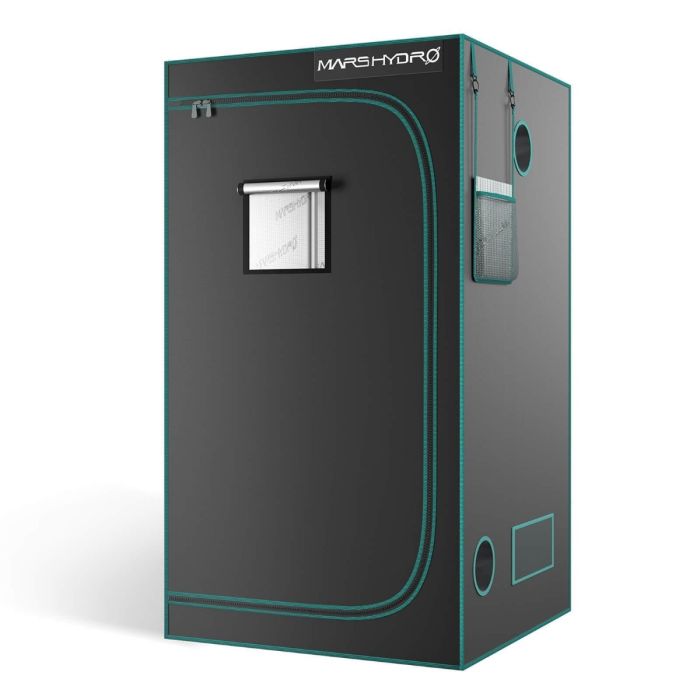 Mars Hydro 3x3 grow tent features a robust metal frame to easily support 110 lbs of weight. The tear-proof 1680D oxford fabric to prevent light leakage is lined with 98% reflective Mylar to enhance light intensity by 25%. All designs are to offer an enclosed and controlled growing environment for indoor plants all year round.