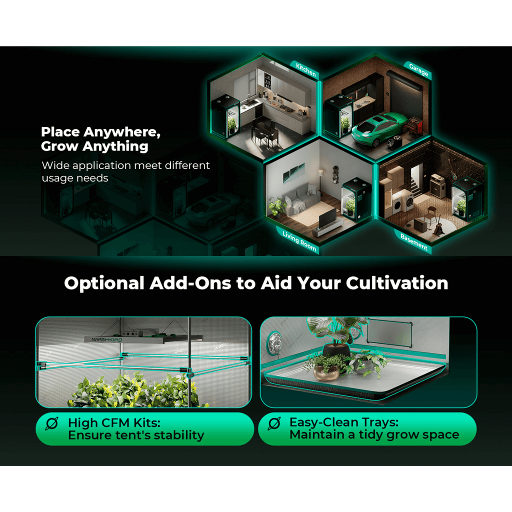 Privacy and Temperature Control: The 5x5 Grow tent offers privacy and protection from children, pets, or unwelcome guests. Additionally, it allows for precise management of the growing environment and lighting, enabling year-round plant cultivation and consistent harvests.