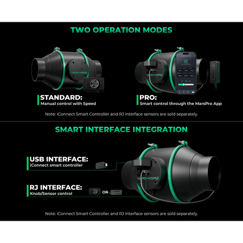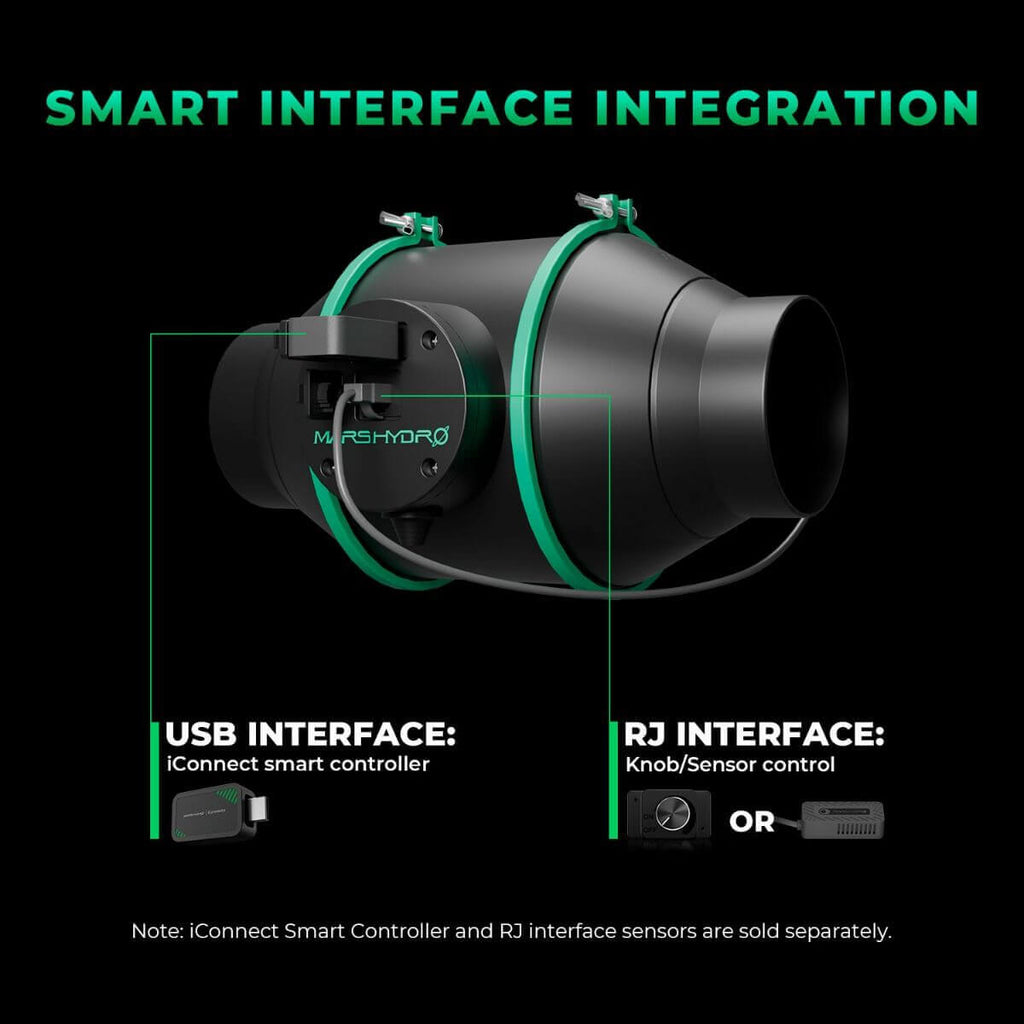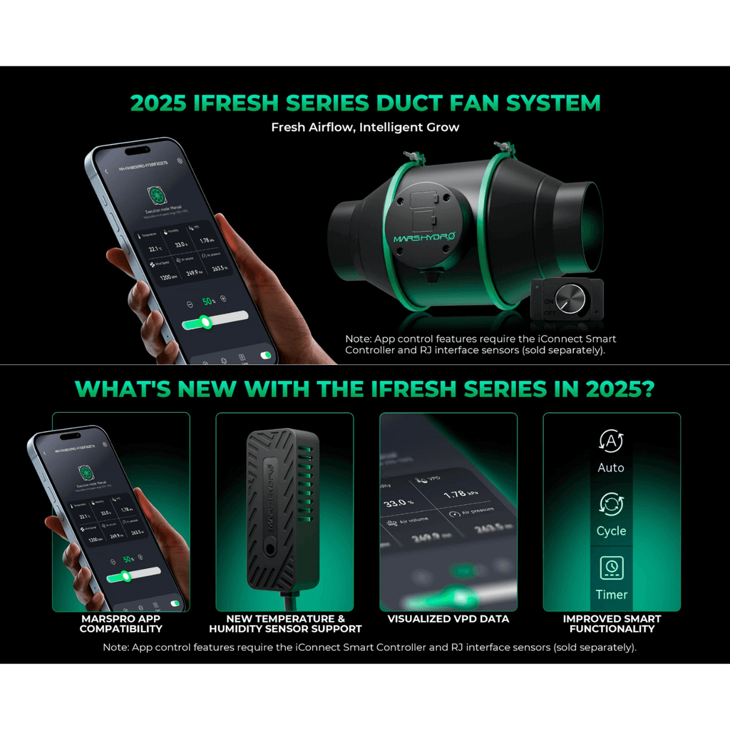 Remote Real-Time Environmental Data Sensor: By using the Mars Hydro app, users can connect to the iFresh 4-inch inline duct fan and access smart features like OTA remote control, climate triggers, alarms, and loop timers from their smartphone.