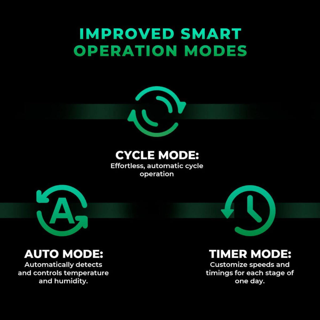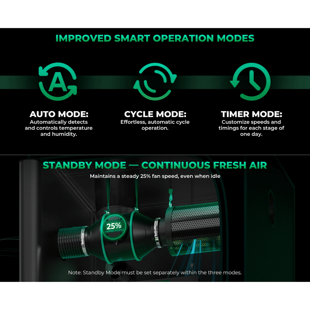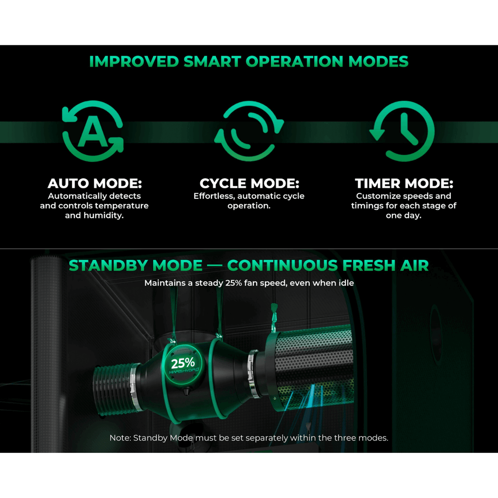 Climate Triggers: Users can set a safe range of temperature and humidity, enabling the inline fan to operate at maximum speed when the temperature or humidity falls outside that range, ensuring an optimal climate without the need for frequent adjustments.