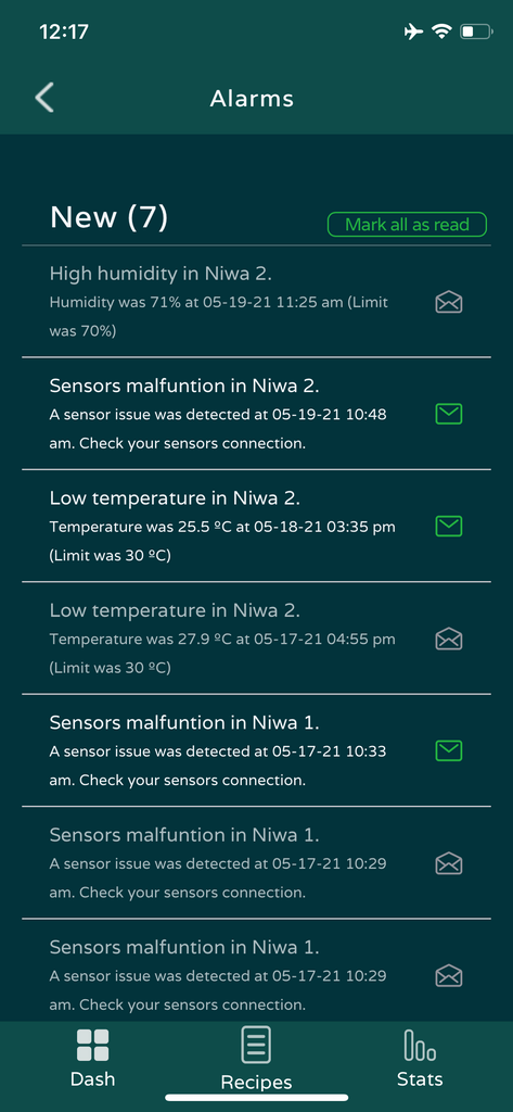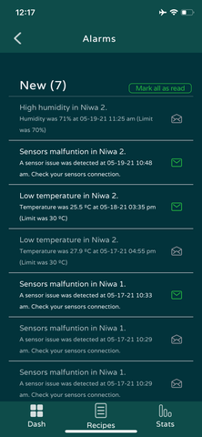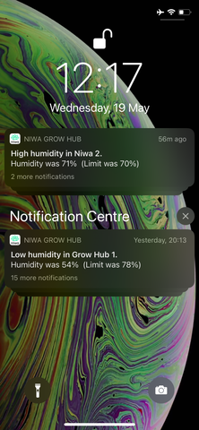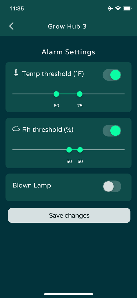 Having alarms and notifications will allow growers to determine the temperature and humidity thresholds important for them and alert growers when their lamp is performing poorly and also for when one of the sensors is having an issue