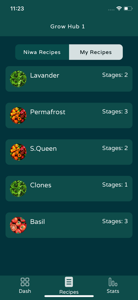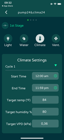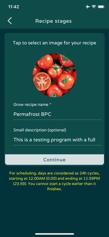 Plants have different needs in terms of their climate, lighting schedule and how much water is required throughout different times of the day. Creating a grow recipe within the Niwa app allows for several stages to define the different parameters needed for each stage of a plant. To continue building out a grow recipe, growers need to select the “next stage” button in order to customize their setting per stage within the plant’s growth cycle.
