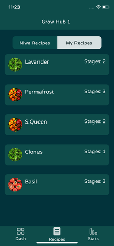For those moments when growers are concerned about what’s going on in their garden, there is no need to worry anymore! With the Niwa Grow Hub+ app, growers can now check the current status of their garden by glancing at their live dashboard, anytime, anywhere, and get a real peace of mind. Also, from the dashboard, growers can select the ‘manual mode’, so they can pause their grow recipe and turn different pieces of equipment ON/OFF for maintenance and then go back to their automated grow recipe.
