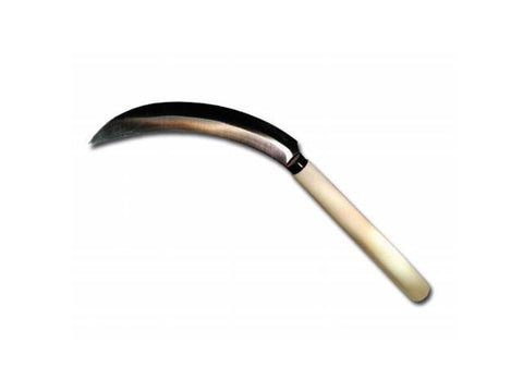 Zenport K205NF Non-serrated 6.5 inch blade sickle with wood handle. Zenport K205NF Non-serrated 6.5 inch blade sickle with wood handle. 6.5-inch (165mm) curved stainless non serrated steel blade. Lightweight, rugged, strong and durable 4.5-inch wooden handle works well for one or two handed use. Blade's serrations cut well through stems and branches. Lightweight wood handle tool designed for one handed use.