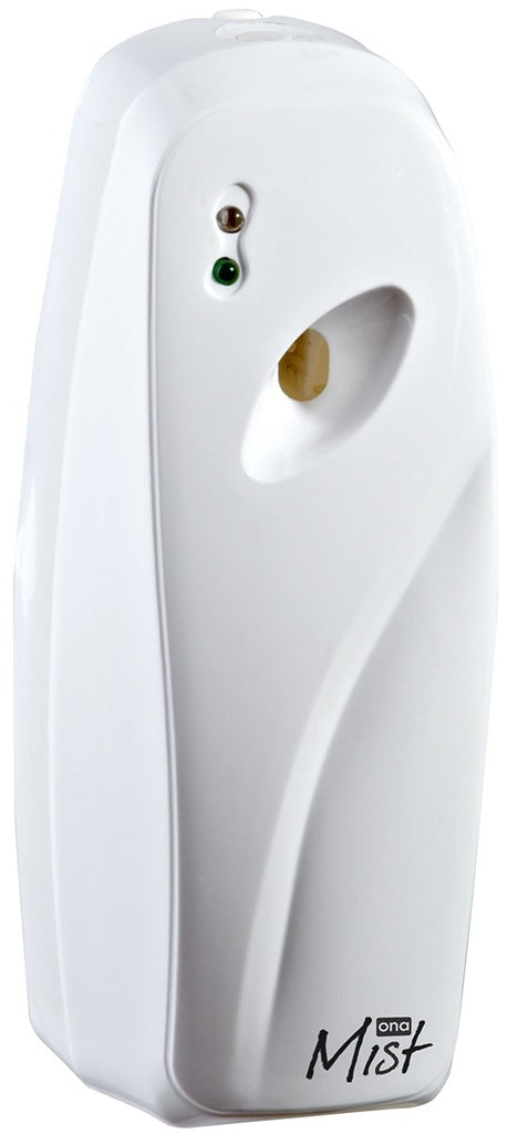 The ONA Mist Dispenser has been redesigned and now features added controls - set it for night, day, or 24 hours. The dispenser also has three programmable spray intervals.