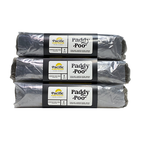Pacific Substrates Paddy Poo™ is a broad range compost-based substrate mix that will help you grow incredible mushrooms. This rapidly colonizing blend promotes increased yields and provides an ideal nutrient profile for compost-loving mushroom varieties.