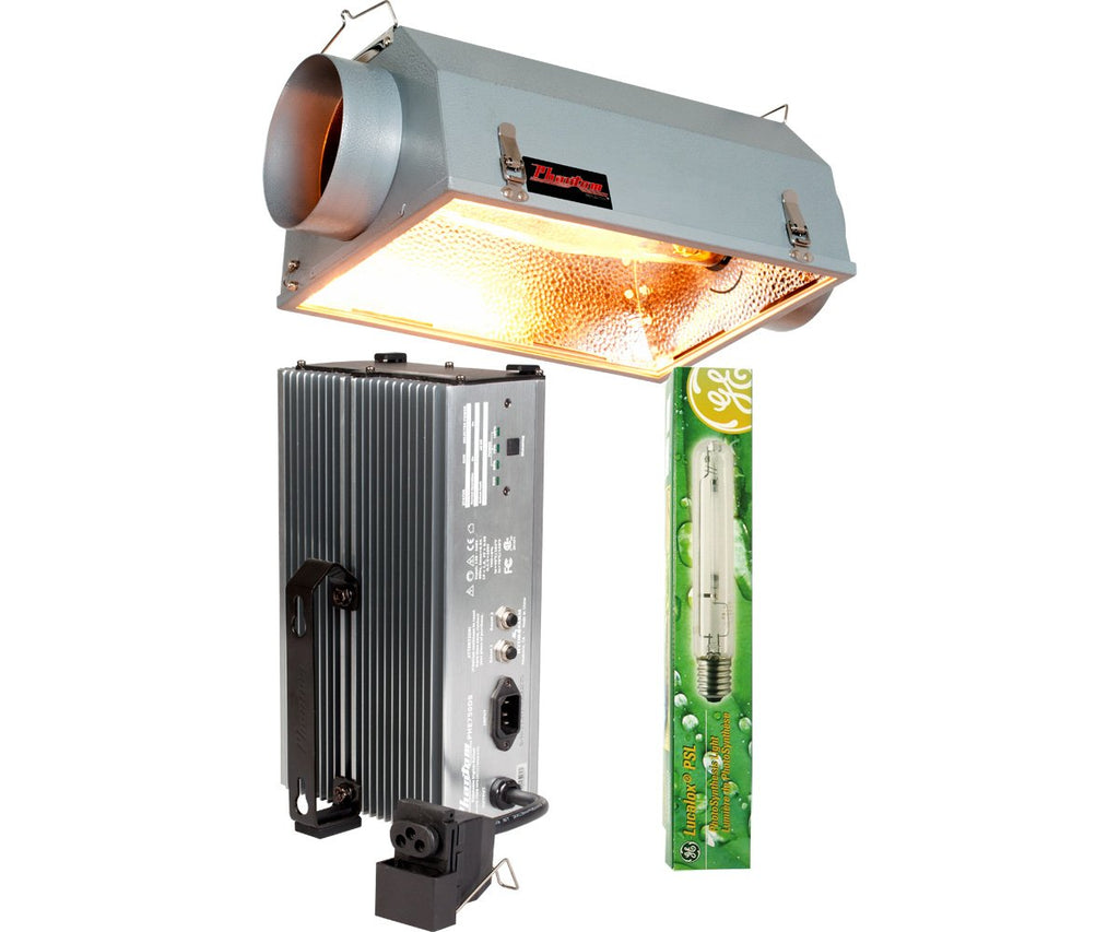 This system combines our Phantom 6" air-cooled reflector with a Phantom 750W dimmable 120V/240V Digital Ballast and a GE Lucalox 750W High Pressure Sodium lamp. The Phantom 6" AC reflector delivers a large footprint of usable light while keeping your growing area cool.