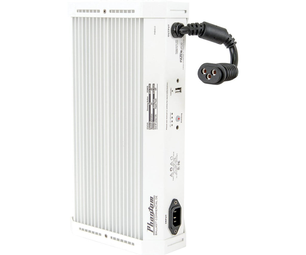 Phantom double-ended technology drives maximum PAR value! The engineering excellence of Phantom ballasts is now incorporated into our new Phantom Commercial DE ballasts. Their high-frequency design is optimized for double-ended 1000W HPS lamps, and they feature a highly precise microprocessor and four-way output control. Totally silent, efficient and lightweight, they will power all doubled-ended reflectors on the market.