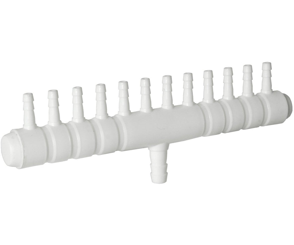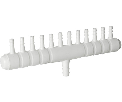 Distribute the output of your air pump with this high quality 12-outlet plastic air manifold. Double barbed ends for tight seal with tubing.