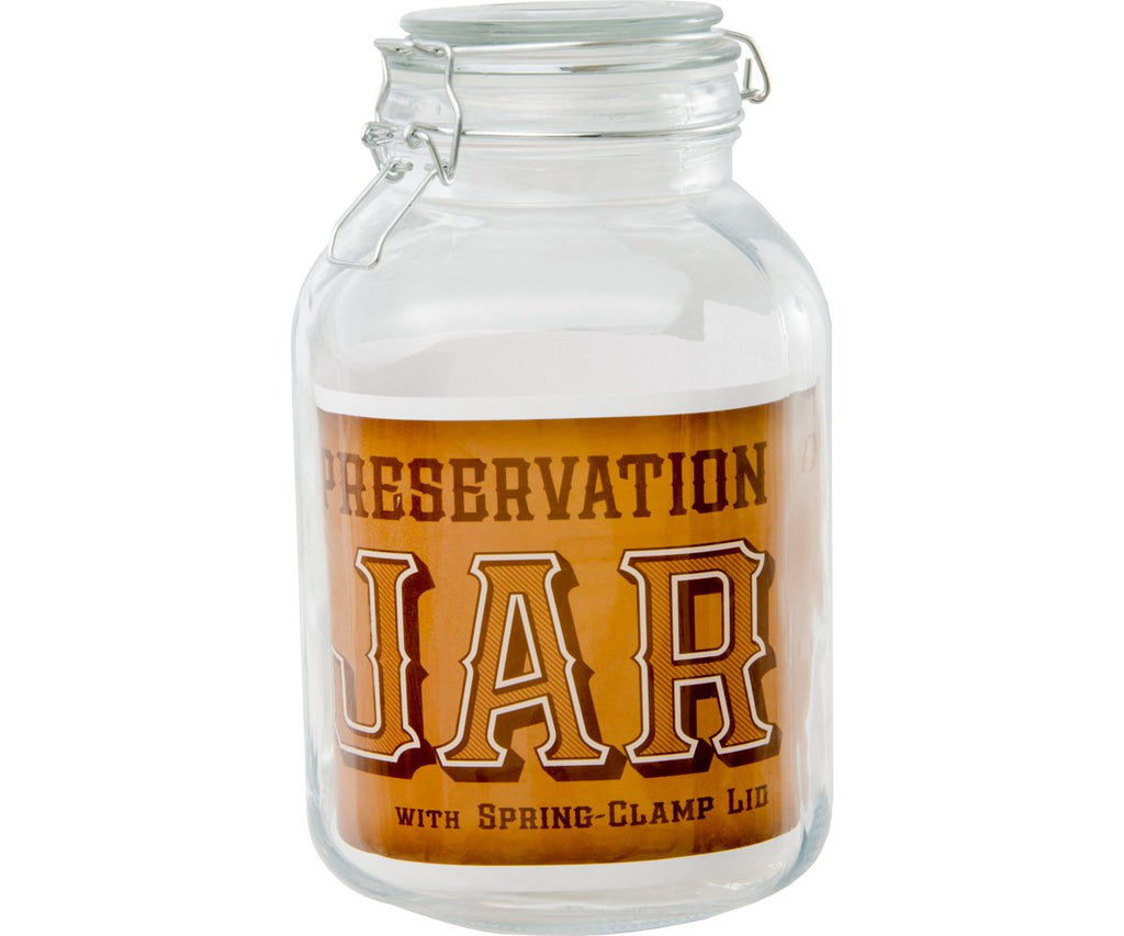 Private Reserve Spring Clamp Jars are clear glass jars with a rounded square design and silicone gaskets. All materials are safe for dry food and herb storage (but not long term home canning—please do not use these for canning). Ideal for display jars, cookie jars, or for items that will be accessed often such as coffee beans, dried herbs, and candies. This item, HPRJ98OZ, is the 98 oz size (single jar). This jar is equipped with a clear gasket and includes an extra gasket (clear). Also included are stick-on labels for identifying contents and storage date.