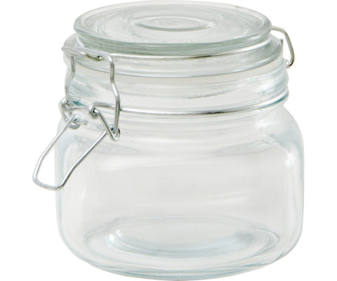Private Reserve Spring Clamp Jars are clear glass jars with a rounded square design and silicone gaskets. All materials are safe for dry food and herb storage (but not long term home canning—please do not use these for canning). Ideal for display jars, cookie jars, or for items that will be accessed often such as coffee beans, dried herbs, and candies. The jars are equipped with clear gaskets, but also include colored spare gaskets (purple, orange, green, red, yellow, blue) for color-coding different contents. Also included are stick-on labels for identifying contents and storage date. Available in a range of sizes that include 18 oz, 27 oz, 34 oz, 49 oz, 70 oz, and 98 oz. This item, HPRJ18OZ6, is the 18 oz size (pack of 6).