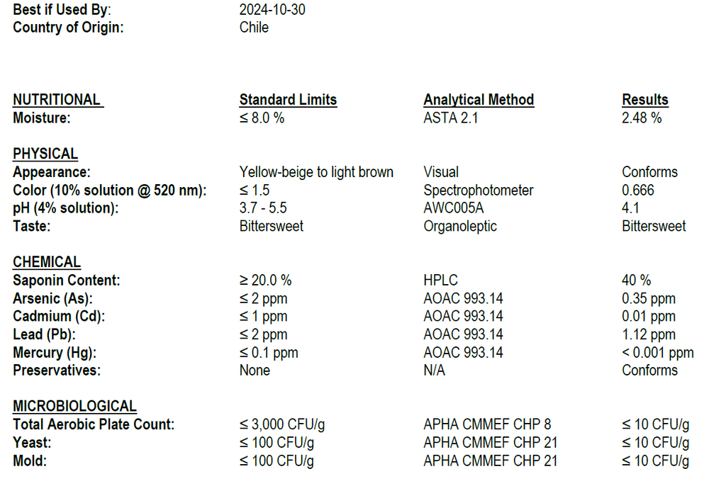 Latest Batch from July 2023 is testing at 40% Saponin