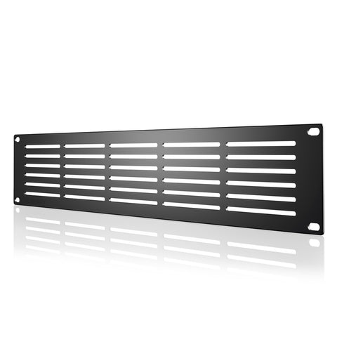 AC Infinity steel rack panels are designed for economical use in standard equipment. Each panel is constructed with cold rolled steel and coated in matte-black powder-coat paint for a clean and high-end appearance. The panels can be used to conceal empty rack spaces for a uniform rack appearance and also provides rack rail support. Vent design maximizes airflow and prevents hot spots, while maintaining structural integrity. Features dual flanges and thick 3mm steel gauge for added strength. Supports proper thermal control by directing how the airflow moves throughout the rack and can be used in conjunction with a rack fan system. This panel takes 2U of rack space; 1U and 3U blank and vented panels are also available.