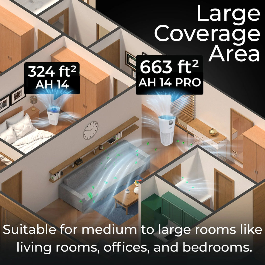 But don’t want to deal with complicated setups, noisy operations, or ineffective air cleaning. Meet the AH-14 and AH-14-PRO Air Purifiers by RKIN. These sleek, zero-installation air purifiers use HEPA 14 filtration, Carbon, UV disinfection, and negative ion technology to transform your indoor environment into a haven of clean, healthy air. Unlike other air purifiers on the market, they offer advanced purification through multiple stages, ensuring the purest air imaginable. Plus, you can customize your air's flow and purity with adjustable settings!