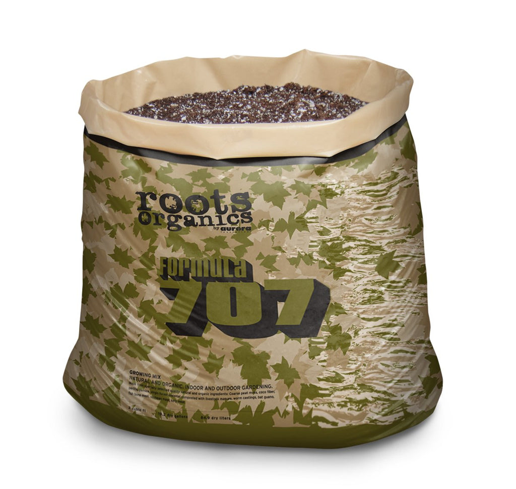 Formula 707 was created for a special kind of gardener: one who wants to control their own destiny. It is different from the other potting mixes created by Aurora Innovations. It was designed with greater water holding capacity, less perlite and pumice, and specific ingredients for large container gardening. In fact, the bag itself is a 30-gallon grow bag containing just less than 20 gallons of the finest quality potting mix. Made from only the finest ingredients including coarse peat, coco fiber, compost, perlite, pumice, worm castings, bat guano, fish bone meal, soybean meal, feather meal, kelp meal and much more.