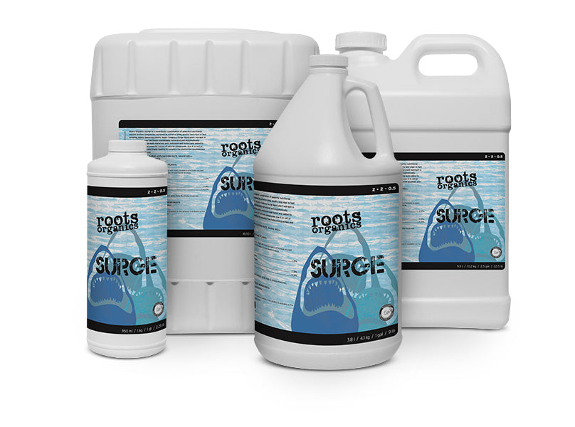 Roots Organics Surge plant nutrient and microbe growth supplement is designed from the finest sustainably-harvested and enzymatically processed marine protein materials. The addition of natural sugar, kelp and humic acid to a powerful fish base creates a potent nutrient supplement to increase plant vigor for your distinctive quality harvest. Faster growth and greater yields for lush plants - all these benefits from one powerful product.