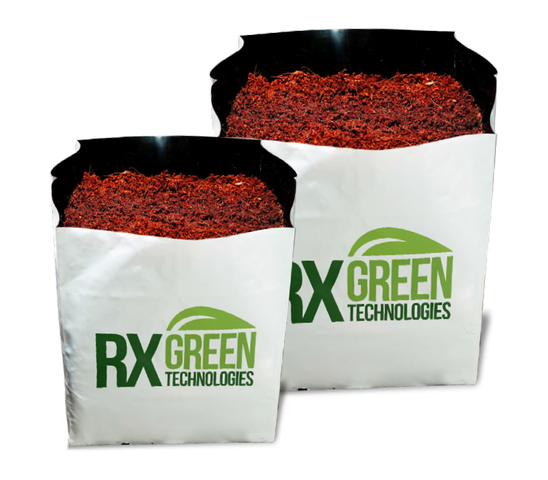 Coco coir is a soilless substrate produced from the fibrous husks of ripe coconuts. Sourced from established and reputable farms, located in the Tamil Nadu region of India, Rx Green Technologies coir is a sustainable and renewable option for cannabis cultivation. Our coir choices include 100% coir in compressed or ready-to-use form and 70% coir 30% perlite in ready-to-use biodegradable bags.