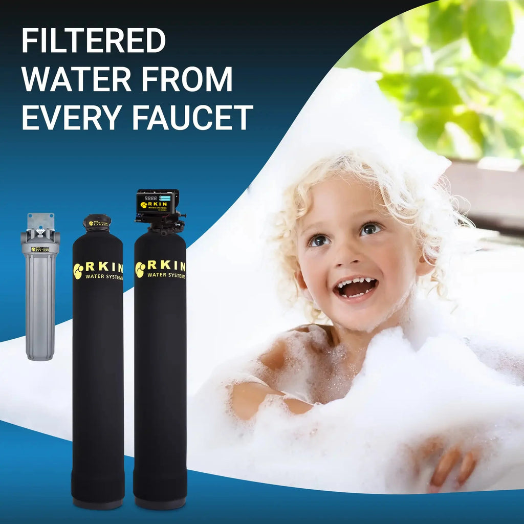 RKIN OnliSoft Pro Saltless Water Softener Carbon Filter Combo is featured in the videos below. The Well Water Filter and/or Salt Based Water Softener installation will be very similar, with additional drain and electrical outlet required.