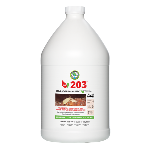 Sierra Natural Science 203 is a foliar spray with active ingredients that dehydrate and kill pests and reduce their available food sources. Safe around kids and pets, this blend kills and repels root aphids, fungus gnats, whiteflies, gnat larvae, thrips, and more.