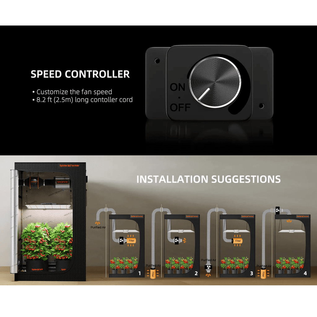 Adjustable Speed: The speed controller allows you to easily set the fan speed, which is essential for optimal growth of your plants.