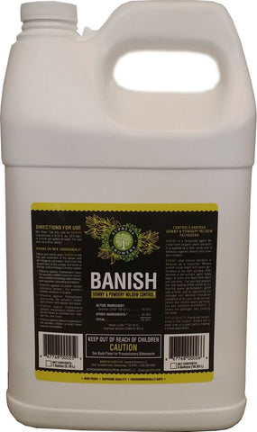 Prevents and inhibits Downy & Powdery Mildew Pathogens. BANISH uses natural geranium oil plant extract as a fungicide to inhibit the spores from colonizing and already established mildew from spreading. Kills the mildew at the source where it is anchored into the plant. Spray the tops and bottoms of the plants for best effect.