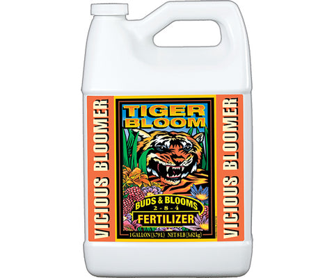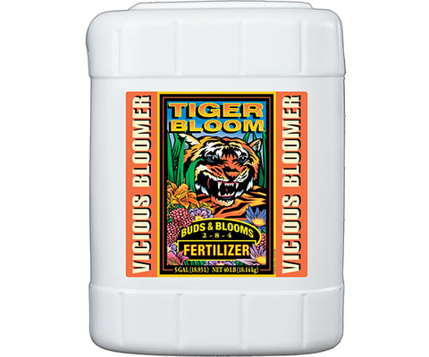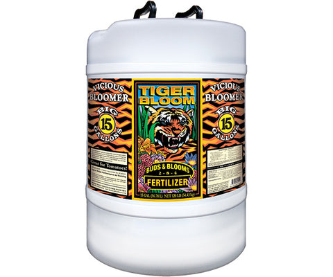 FoxFarm Tiger Bloom is an ultra potent, fast acting, high phosphorus fertilizer that also contains a good supply of nitrogen for growth and vigor. It is formulated with a low pH to maintain stability in storage and keep micronutrients available. Tiger Bloom can be used for both hydroponic and soil applications. When used as directed Tiger Bloom encourages abundant fruit, flower, and multiple bud development. Use Tiger Bloom at the first signs of flowering through harvest.