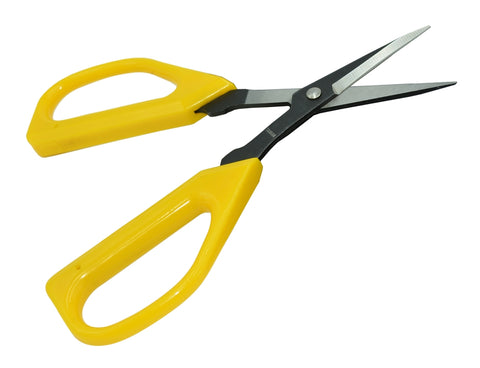 The Zenport ZS109B Ergonomic Bent Handle Deluxe Trimming Scissors, Garden, Fruit, Grape, 6.5-Inch Long, slim blades are razor sharp and make it possible to pick fruit and remove culls in even the most crowded situations. Very popular for harvest trimming and propagation. Soft bow grips fit any hand, reduce fatigue, and can be used by lefties. Blades made of carbon steel. Length: 6.5".Zenport Scissors ZS109B Ergonomic Bent Handle Deluxe Trimming Scissors, Garden, Fruit, Grape, 6.5-Inch LongThe Zenport ZS109T Ergonomic Bent Handle Deluxe Trimming Scissors, Garden, Fruit, Grape, 6.5-Inch Long, slim blades are razor sharp and make it possible to pick fruit and remove culls in even the most crowded situations. Very popular for harvest trimming and propagation. Soft bow grips fit any hand, reduce fatigue, and can be used by lefties. Blades made of carbon steel. Length: 6.5".