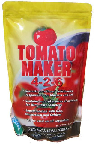 Tomato Maker is a revolutionary fertilizer and soil conditioner that produces a robust crop of firm, tasty tomatoes. A natural-based product, it provides comprehensive (major and micro) nutrition including calcium, magnesium and iron. Tomato Maker has been shown to correct plant nutritional deficiencies and prevent Blossom End Rot, a common tomato problem. Can be used on most other fruits and vegetables too!